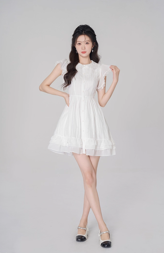 White chiffon dress women's summer ruffled short skirt new high waist A-line small white skirt R4497
