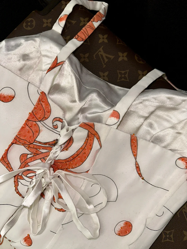 White halter-neck, fitted striped long ball gown, elegant and fairy-like style R6961