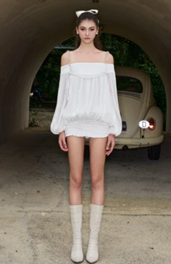 White light strap one shoulder long sleeve cute short skirt homecoming dress R4713