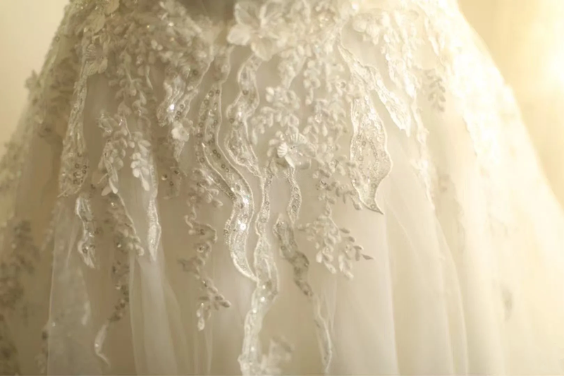 White off-the-shoulder fitted waist slim-fitting ball gown with a full skirt R6768