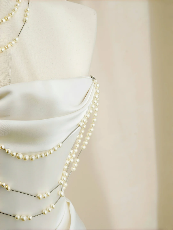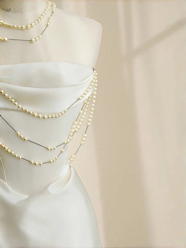 White strapless satin waist slim fit elegant skirt, prom dress R5692