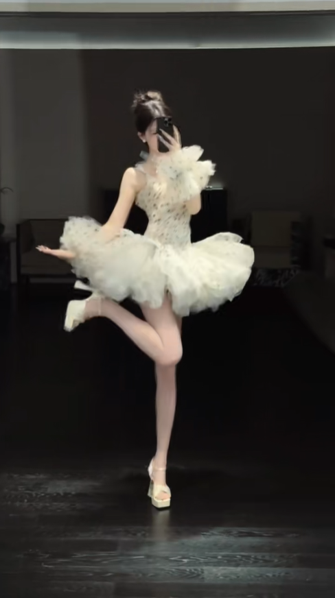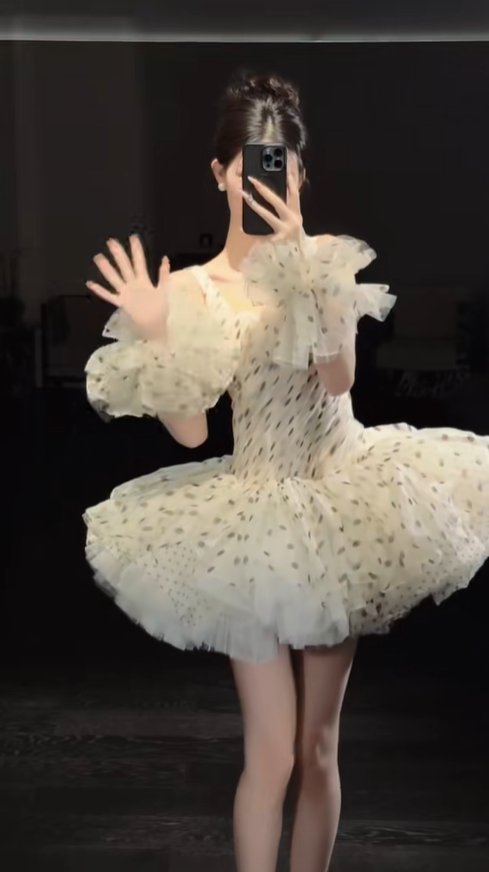 White suspenders, black polka dots, slim waist, slim fit, puffy princess skirt, homecoming dress R4347