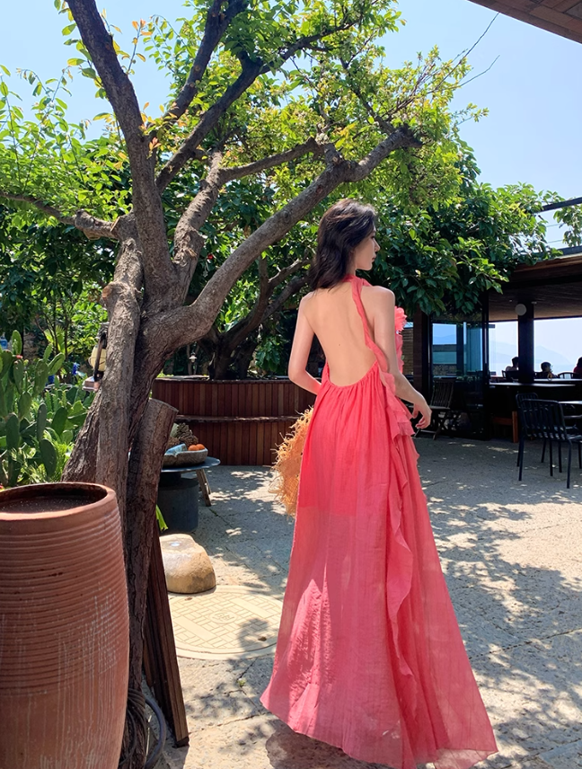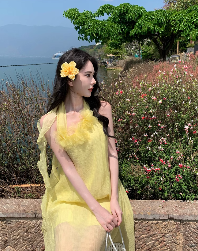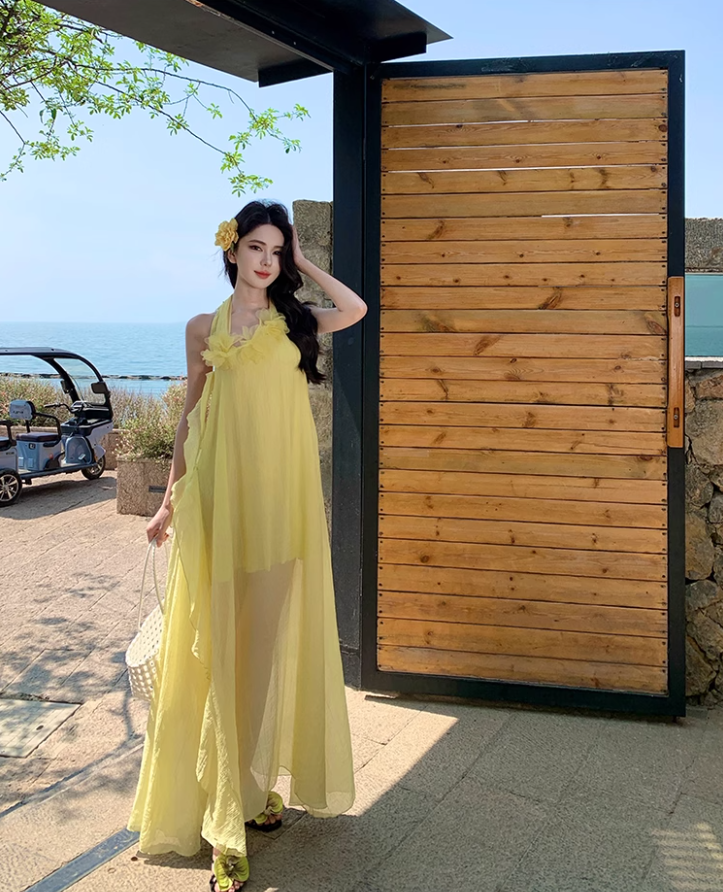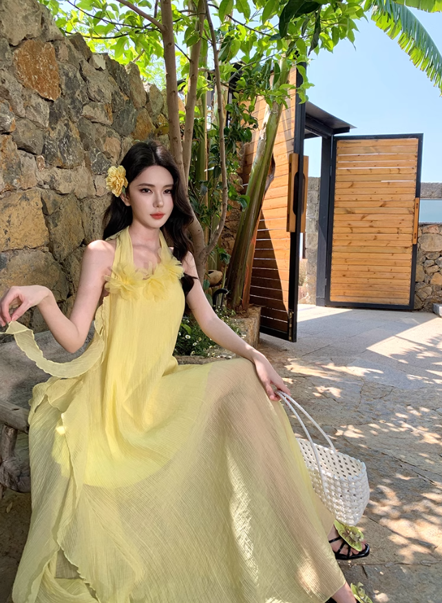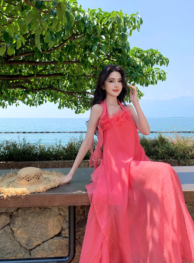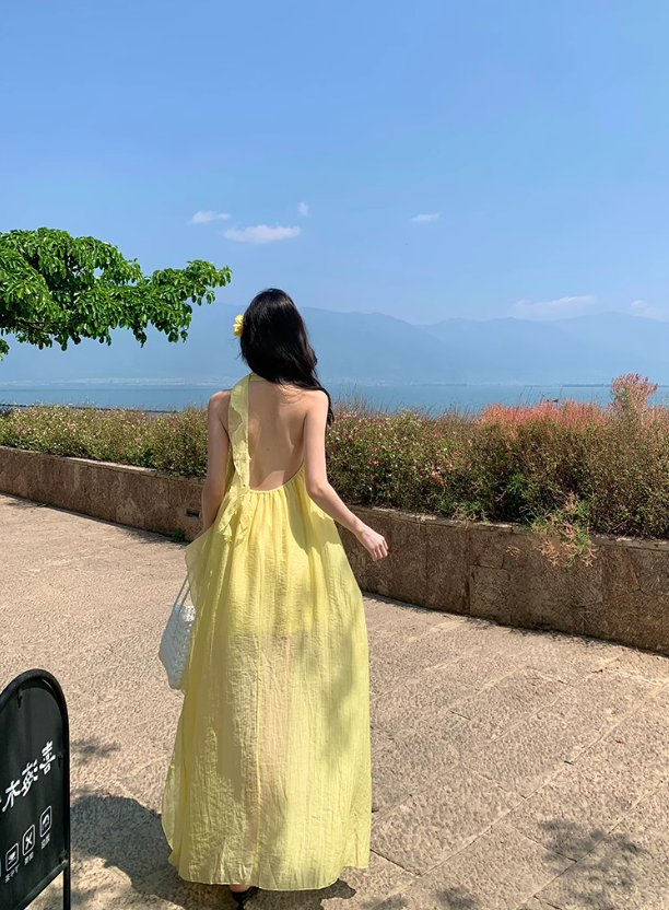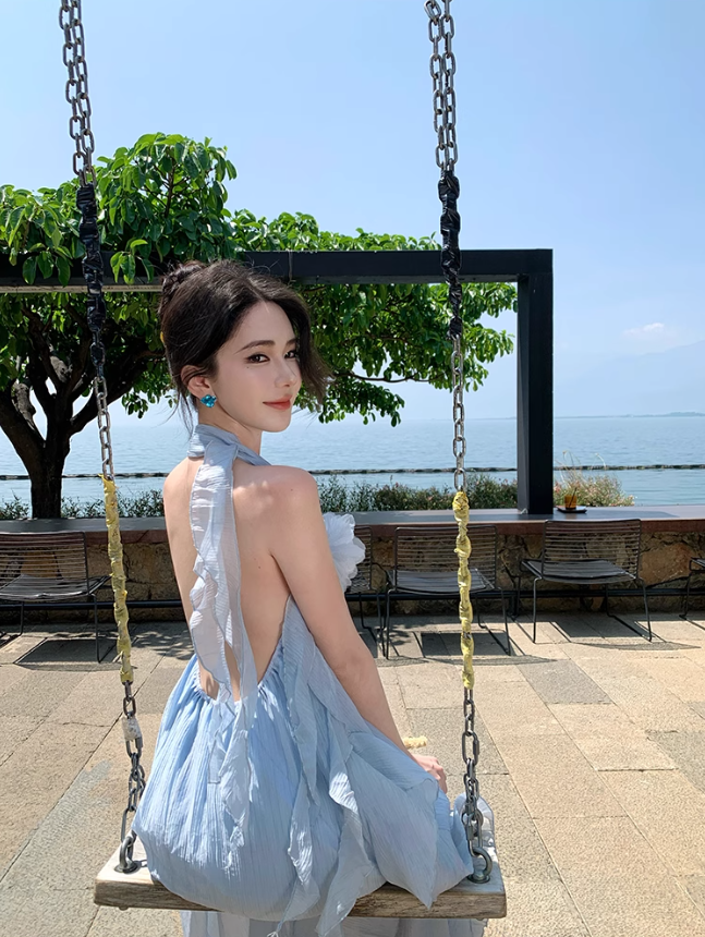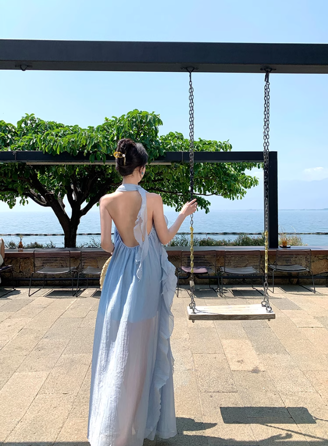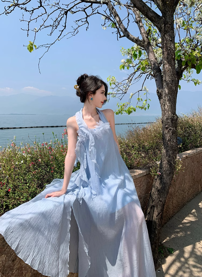 Women's ruffled halter neck dress gentle temperament atmosphere small skirt R0814
